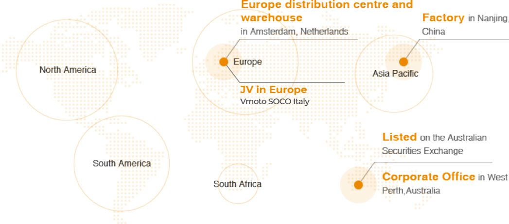Vmoto is a global scooter manufacturing and distribution group. The Company specialises in high quality electric powered two-wheel vehicles and manufactures a range of western designed electric powered two-wheel vehicles from its wholly owned 30,000sqm state of the art manufacturing facility in Nanjing, China. Vmoto combines sophisticated Chinese manufacturing capabilities with European design and offers high performance and competitive products to international markets.